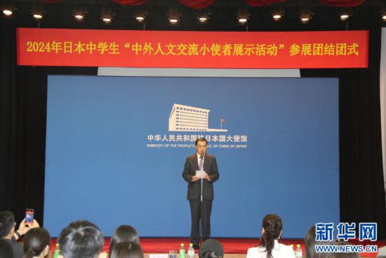 7月15日,中國駐日本大使吳江浩在2024年日本中學生“中外人文交流小使者展示活動”參展團結團儀式上致辭。記者 胡曉格 攝
