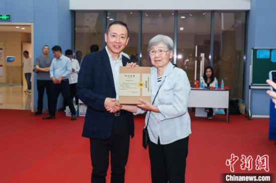 沈清向松崎君代頒發“青夢球緣特別顧問”證書!”本┐篼[翔宇慈善基金會供圖