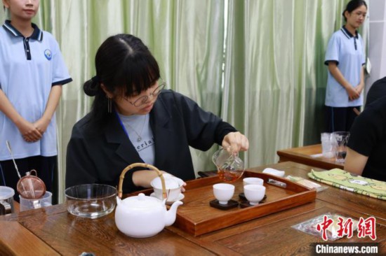 圖為日本青少年體驗中國茶藝沖泡。中新社記者 林馨 攝