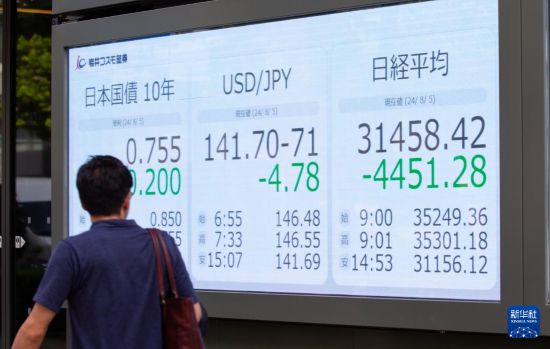 8月5日,行人走過位于日本東京的顯示實時股價的電子屏幕。新華社記者 岳晨星 攝