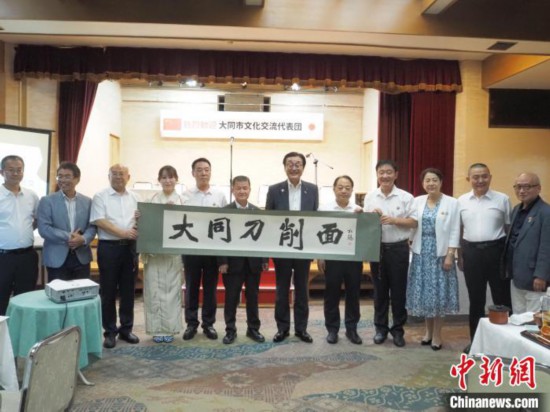 大同市代表向日方現場演示大同刀削面技法,并題寫“大同刀削面”。大同市委宣傳部 提供