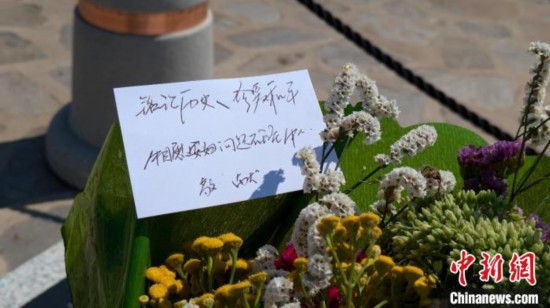 2024年8月9日,中國“慰安婦”問題研究中心代表蔣杰老師于意大利薩丁島斯廷蒂諾市向少女像敬獻花束。上海師范大學中國“慰安婦”問題研究中心供圖