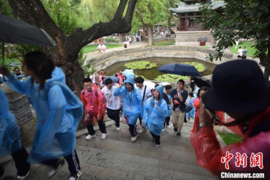 日本青少年交流團與太原外國語學校的學生一起在晉祠參觀。南嘉豪 攝