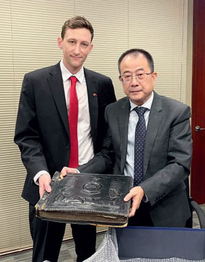 2022年11月,埃文·凱爾將記錄侵華日軍罪行的相冊無償捐贈給中國駐芝加哥總領事館。受訪者供圖