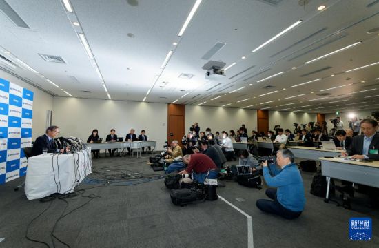 1月7日,在日本東京,日本制鐵公司會長兼首席執行官橋本英二出席記者會。新華社記者 張笑宇 攝