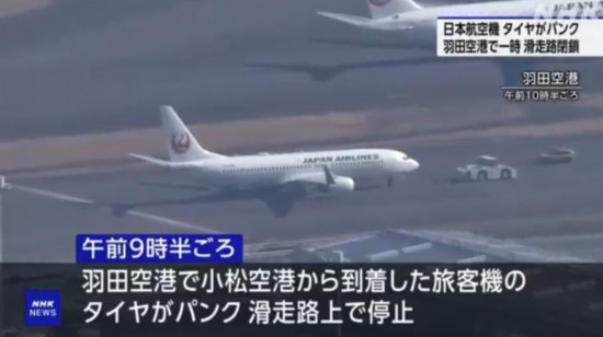 中新網1月9日電 據日本廣播協會(NHK)報道,當地時間9日上午,一架從日本石川縣小松機場飛抵東京羽田機場的日本航空公司客機輪胎爆胎,導致羽田機場一條跑道臨時關閉。