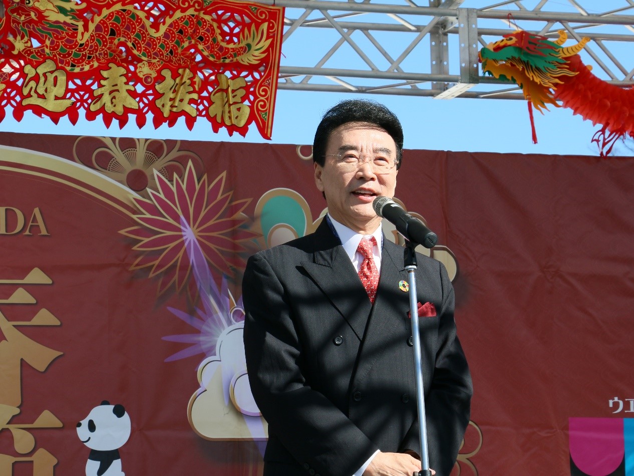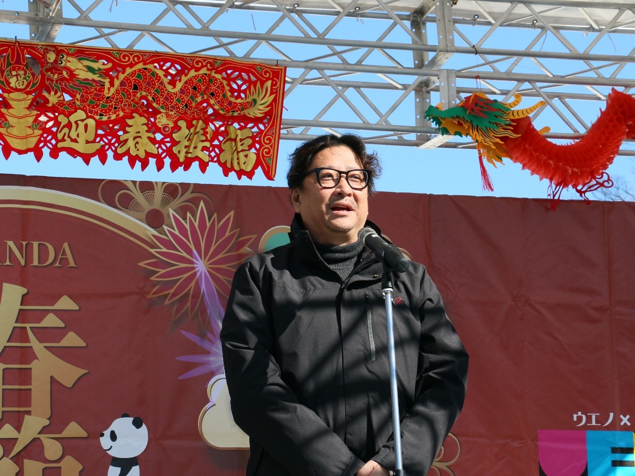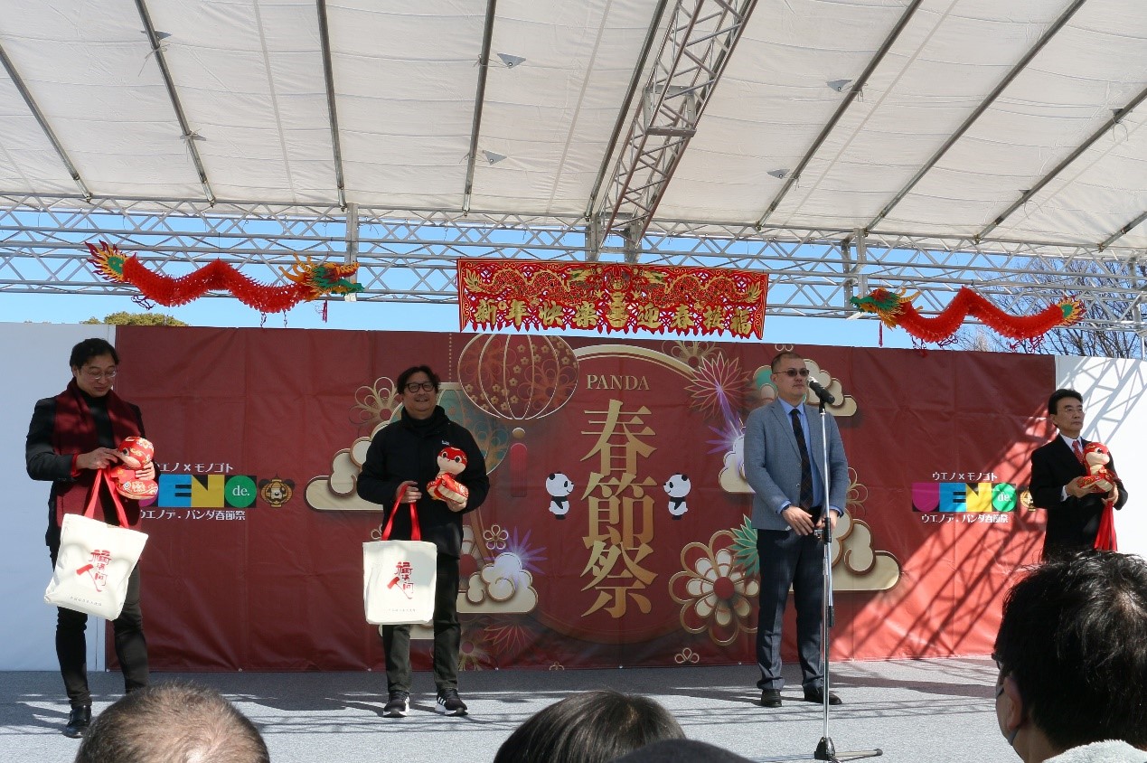 中國駐東京旅游辦事處向到場嘉賓贈送了2025年“歡樂春節”吉祥物“吉祥蛇”與“溫暖迎春包”。上野中央通商店會會長代理二谷仁吾宣布活動正式開始。