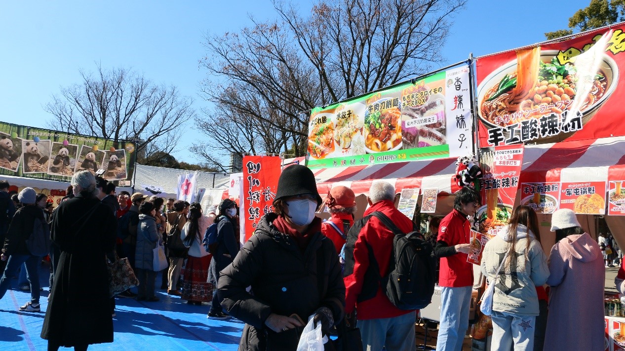 今年的上野熊貓春節祭匯聚了數十家當地中日美食、美酒。酸辣粉、小籠包、擔擔面、日式煎餃、章魚小丸子和北海道海鮮等中日美食攤位前人頭攢動,世界各國游客與當地民眾在此歡度了一個非遺中國年、世界年。