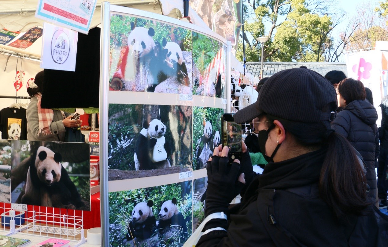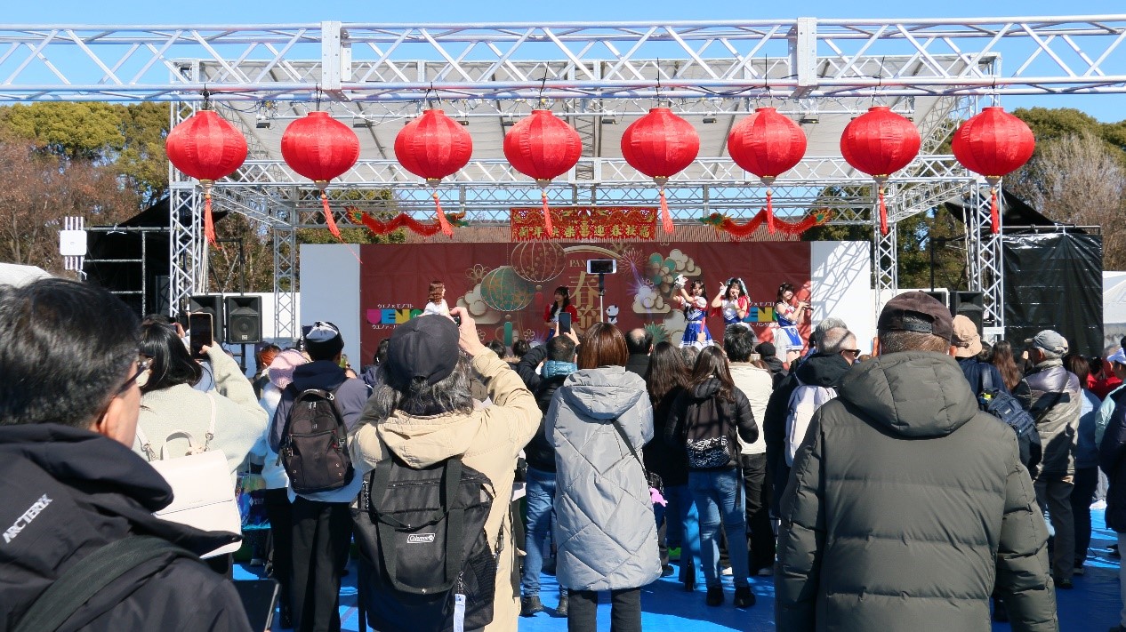 會場上,日本大熊貓攝影師高氏貴博的“大熊貓回家過年”特展、熊貓周邊產品等大熊貓元素尤為亮眼,吸引了大批日本民眾駐足觀賞。場內還有豐富多彩的文藝演出。