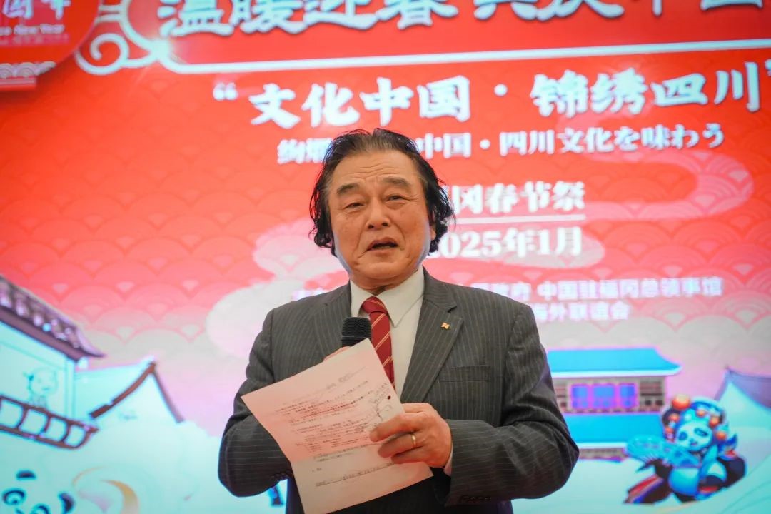 成巖在致辭中向大家致以新春祝福,回顧過去一年中國式現代化建設取得舉世矚目的輝煌成就,宣介巴蜀文旅特色和新時代四川高質量發展成果,感謝領區僑胞為推動中日友好所做積極貢獻。成巖表示,當前中日關系處在改善發展的關鍵時期。習近平主席同石破茂首相利馬會晤為全面推進中日戰略互惠關系提供關鍵政治引領。兩國各層級落實領導人重要共識,交往互動更加密切。期待九州沖繩山口各縣與包括四川在內的中國地方城市拓展各領域合作,大力推動民間友好交往特別是青少年交流,促進民心相通。