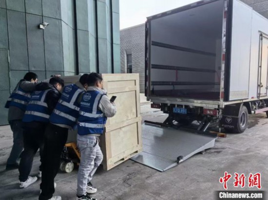 圖為打包完畢的展品準備裝車運輸。孫玥 攝