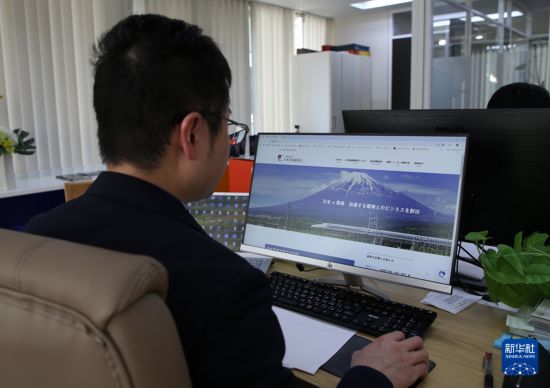 14日,日本云南總商會工作人員正在介紹該商會的日語官方網站。新華社記者岳晨星攝
