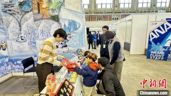 中國駐大阪旅游辦事處以“冰雪旅游”為主題,設置了特色展位,展示中國多地的旅行資料,同時帶來“吉祥蛇”周邊產品。夢幻的冰雪主題展位和豐富資料吸引了大量日本游客駐足,精美的“吉祥蛇”胸針和熊貓造型紀念品也引發觀眾參與“抽紅包”活動。