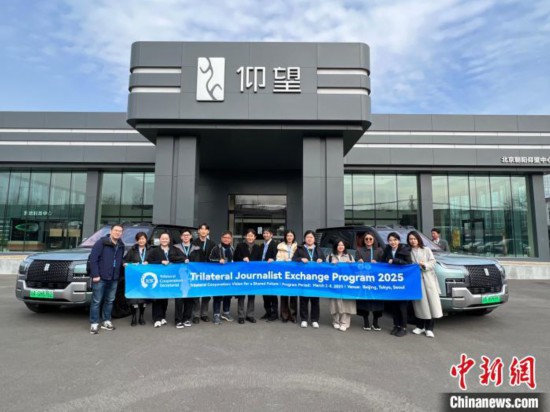 3日,第九屆中日韓記者交流活動在北京正式啟動。圖為當地時間4日,中日韓記者團在北京參訪仰望汽車。中日韓合作秘書處 供圖