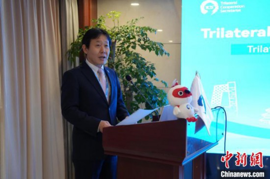 3日,第九屆中日韓記者交流活動在北京正式啟動。圖為中日韓合作秘書處副秘書長圖師執二在開幕式致辭。中新網記者 劉旭 攝