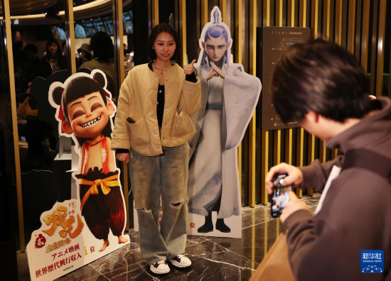 這是3月14日在日本東京拍攝的電影《哪吒之魔童鬧?!啡毡臼子呈浆F場。新華社記者 賈浩成 攝
