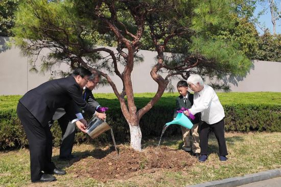 日本“紫金草合唱團”代表與南京紫金草童聲合唱團代表種下一棵和平音樂樹。新華社記者毛俊 攝