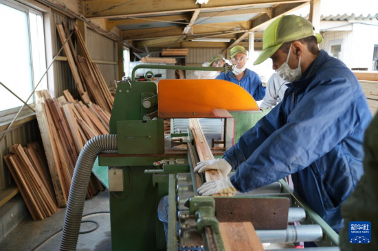 3月13日,在日本埼玉縣川越市,孤獨癥人士在“山彥制作所”切割木料。新華社記者 錢錚 攝
