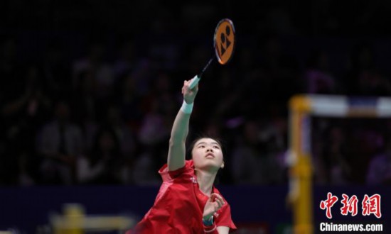 4月10日,2025亞洲羽毛球錦標賽各單項1/8賽在浙江寧波打響,國羽女單選手高昉潔力克日本選手宮崎友花。圖為高昉潔在比賽中。(2025亞洲羽毛球錦標賽組委會供圖)