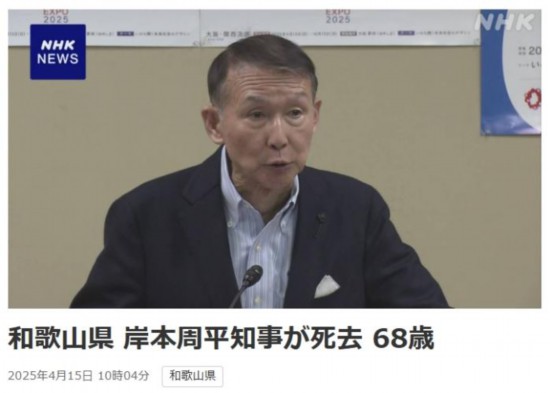 中新網4月15日電 據日本廣播協會(NHK)報道,當地時間15日,日本和歌山縣知事岸本周平去世。一天前,他在位于和歌山市內的知事官邸被發現倒在地上,隨后被送往醫院。
