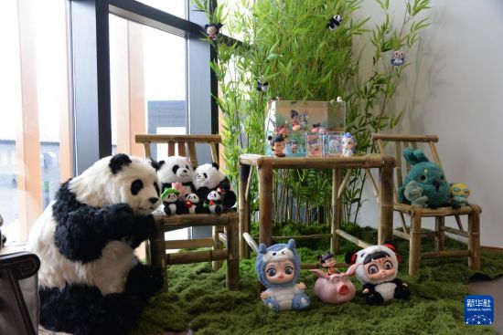 這是4月28日在大阪世博會中國館拍攝的由四川活動周展示的大熊貓等文創產品。新華社記者 涂一帆 攝