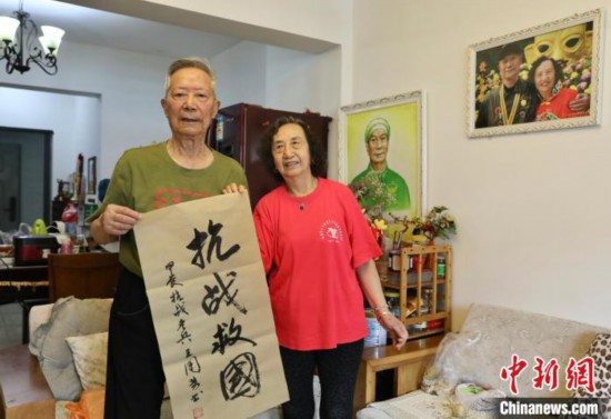 中新網成都5月6日電?。ㄓ浾?賀劭清 王磊 呂楊)“我只是抗日大潮中的一滴水,但是80年過去了,沒人忘記這段歷史,也沒人忘記這滴水?!?日,98歲的抗戰老兵王用勞在成都家中,給中新網記者展示了他收到的一張新年賀卡。和普通新年賀卡不同的是,這張泛黃的新年賀卡是一張復制品,它的原件來自80年前。