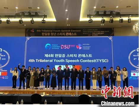 中新網首爾5月26日電 (記者 劉旭)中新網記者26日自中日韓合作秘書處(以下簡稱“秘書處”)獲悉,第四屆中日韓青年演講比賽于23日在韓國釜山東西大學Centum校區成功舉行。