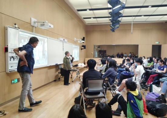 2021年4月28日,白麗詩在上海中學與學生交流。新華社發(上海中學供圖)