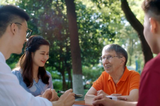2019年,白麗詩與上海外國語大學的學生在一起。新華社發(上海外國語大學供圖)