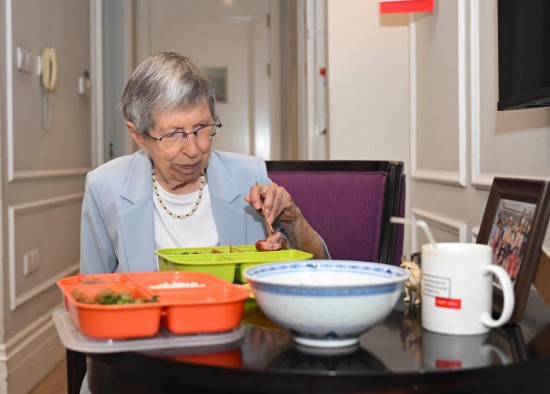 2025年6月13日,白麗詩在養老院的房間里用午餐。
