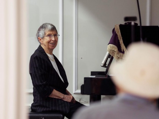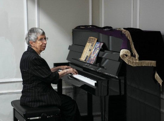 2025年6月13日,白麗詩在養老院的多功能廳彈鋼琴。