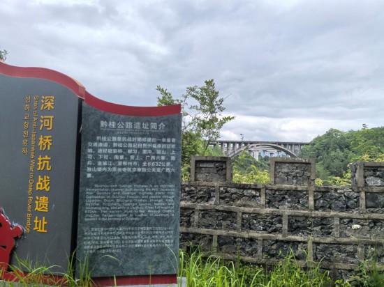 如今,被炸斷的深河橋橋墩掩映在樹林間,默默訴說著歷史;一旁重建的深河橋,已是210國道上的重要橋梁。站在深河橋抗戰遺址上遠眺,G75蘭海高速上的深河大橋與獨山前往都勻的都獨同城大道凌空飛架,橫亙在青山綠水間……交通設施的滄桑巨變,見證著獨山人民奔向幸福生活。