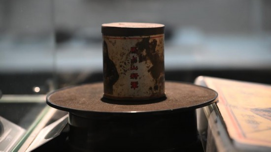 泰來縣江橋抗戰紀念館中展出的馬占山牌香煙煙盒(6月25日攝)。新華社記者 張啟明 攝