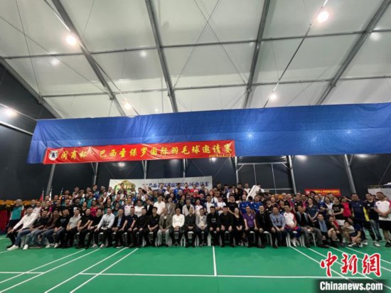 中國駐圣保羅總領館領僑室主任榮強、僑務領事李曉明、巴西華人協會會長葉周永、巴西閩商聯合會會長林本昂、巴西華人羽毛球協會會長許明林等嘉賓出席開幕式,并與參賽選手合影留念。