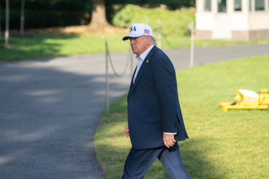 7月6日,美國總統特朗普乘直升機返回華盛頓白宮。新華社記者胡友松攝