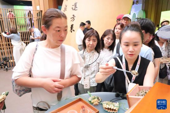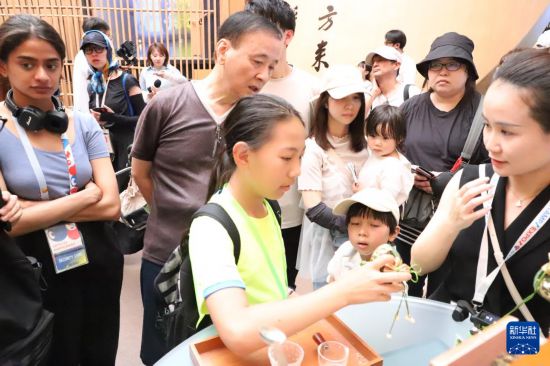 當天,中國館內設有多個展示和體驗區域。大師精品區匯集多位中國國家級、省級手工藝大師的代表作品;江南生活體驗區展示了知名品牌的創新產品;互動體驗區提供宋代點茶、杭繡技藝展示、中藥香囊制作等活動,吸引眾多觀眾參與。