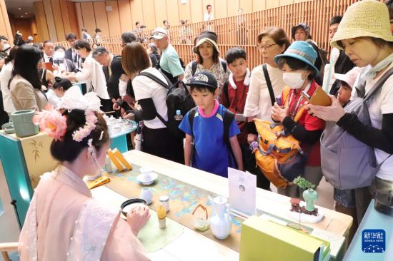 7月12日,人們在日本大阪世博會中國館“浙江周”活動上觀看宋代點茶展示。新華社記者 李子越 攝