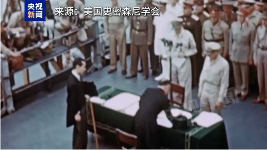 1945年9月2日,泊于東京灣的美國戰艦密蘇里號上,在包括中國在內的9個受降國代表注視下,日本在投降書上簽字。