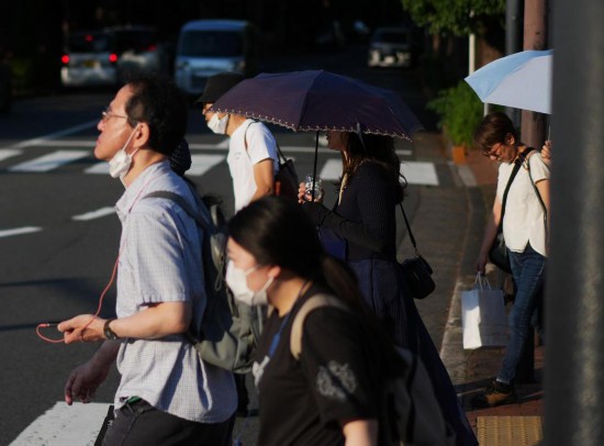 6月18日,在日本東京,行人在街頭行走。新華社記者賈浩成攝