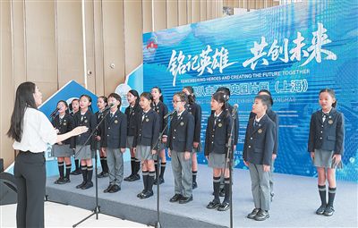7月8日,上海宋慶齡學校學生合唱團在“銘記英雄 共創未來”飛虎隊主題歷史圖片展開幕式上演唱歌曲《友誼地久天長》。本報記者 白紫微攝