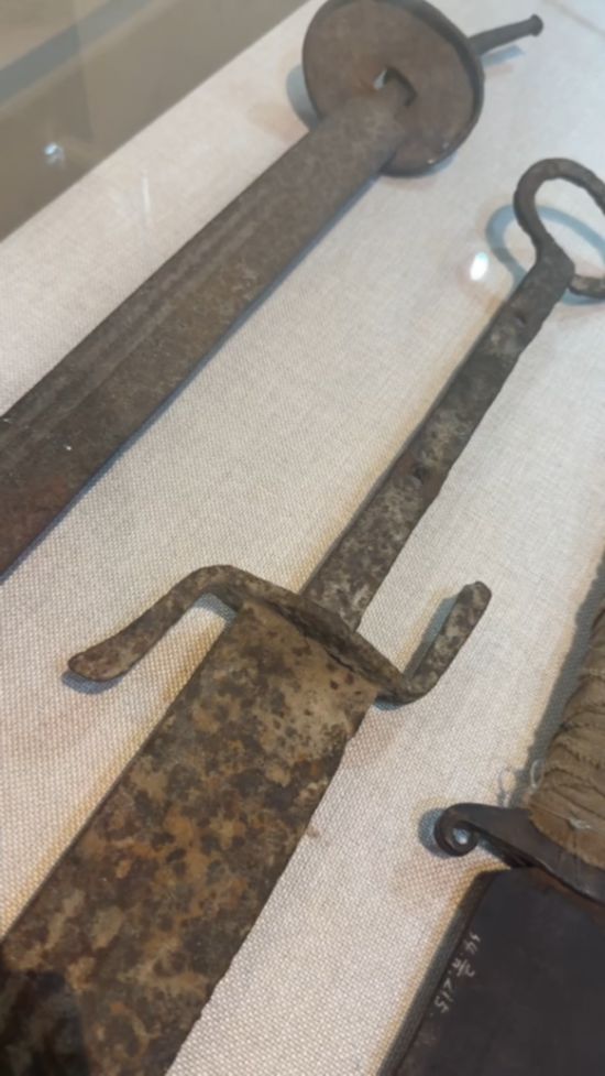 侵華日軍第七三一部隊罪證陳列館展出的一把獎勵解剖技師的軍刀。新華社記者 楊思琪 攝