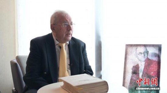 近日,約翰·拉貝之孫托馬斯·拉貝在北京接受中新社記者專訪。中新社記者 劉超 攝