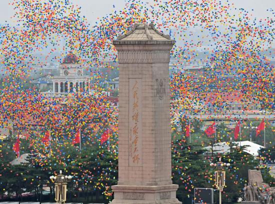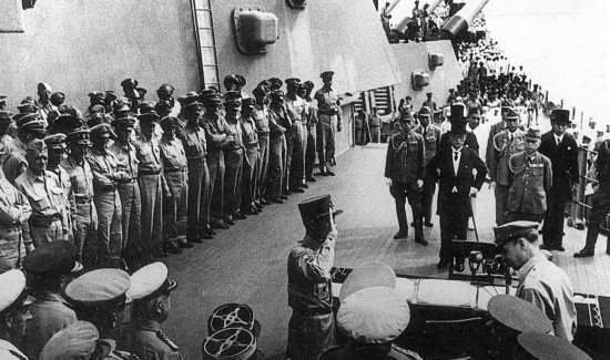 1945年9月2日,泊于東京灣的美國戰艦密蘇里號上,在包括中國在內的9個受降國代表注視下,日本在投降書上簽字。新華社發