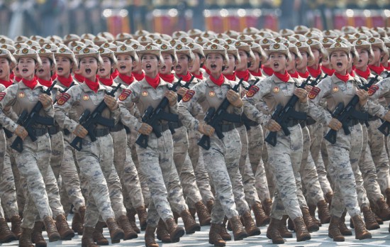 “聽黨指揮!能打勝仗!作風優良!”“正義必勝!和平必勝!人民必勝!”習近平主席乘車返回途中,受閱官兵齊聲高呼。