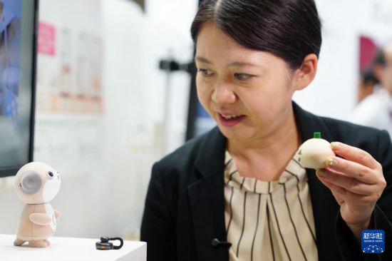 這是10月14日在日本千葉縣舉行的2025年日本高新技術博覽會上拍攝的夏普公司的智能電子寵物。新華社記者 賈浩成 攝