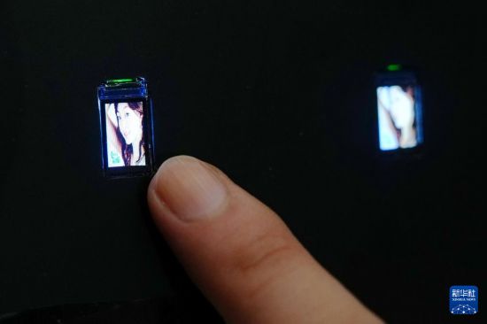 這是10月14日在日本千葉縣舉行的2025年日本高新技術博覽會上拍攝的中國貴德集團的0.49英寸顯示屏。新華社記者 賈浩成 攝