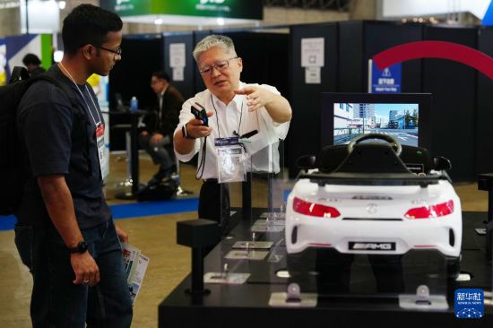 10月14日,在日本千葉縣,工作人員在2025年日本高新技術博覽會上向參會者介紹智能駕駛技術。新華社記者 賈浩成 攝